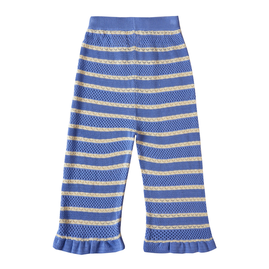 This textured trousers features a delicate pointelle pattern with a pop of white and the ruffle hem, giving it a light, playful, and effortlessly stylish vibe.